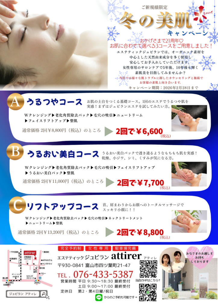 【ご新規様限定】冬の美肌キャンペーン開催中♪